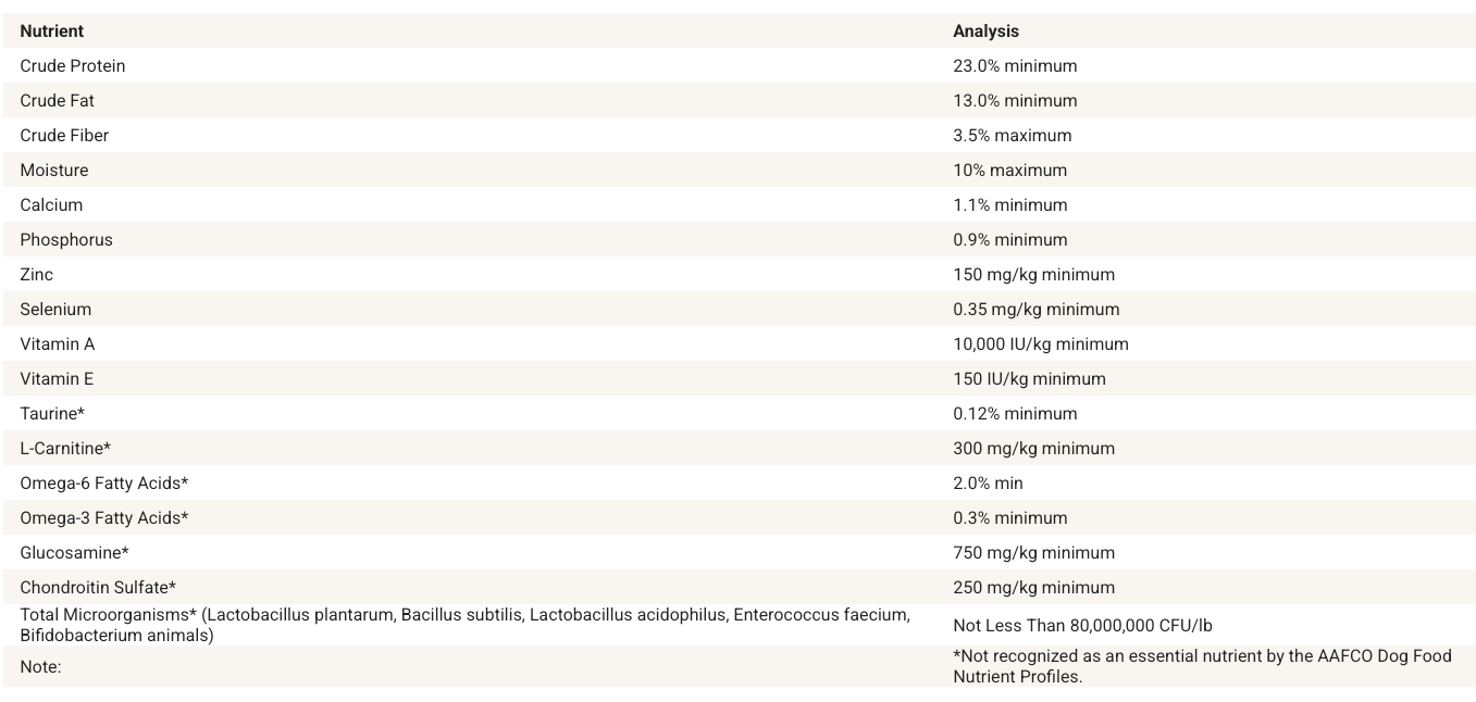 Proper protein and fat levels provide the nutrients needed to sustain a large body while maintaining healthy body condition. Glucosamine and chondroitin help support joints, and omega-6 and omega-3 fatty acids from superfoods help maintain healthy skin and a shiny coat.