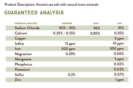 Redmond 10 Fine with Garlic is a premium sea salt with naturally occurring essential trace minerals including zinc, manganese, copper, iodine and more. 10 Fine with Garlic is free of chemical processing, preferred by livestock, and helps animals maintain a normal function. These mineral-rich granules are the perfect size for mixing or feeding free choice. 10 Fine can be used for all classes of livestock. Garlic helps to naturally control flies, lice, and ticks.